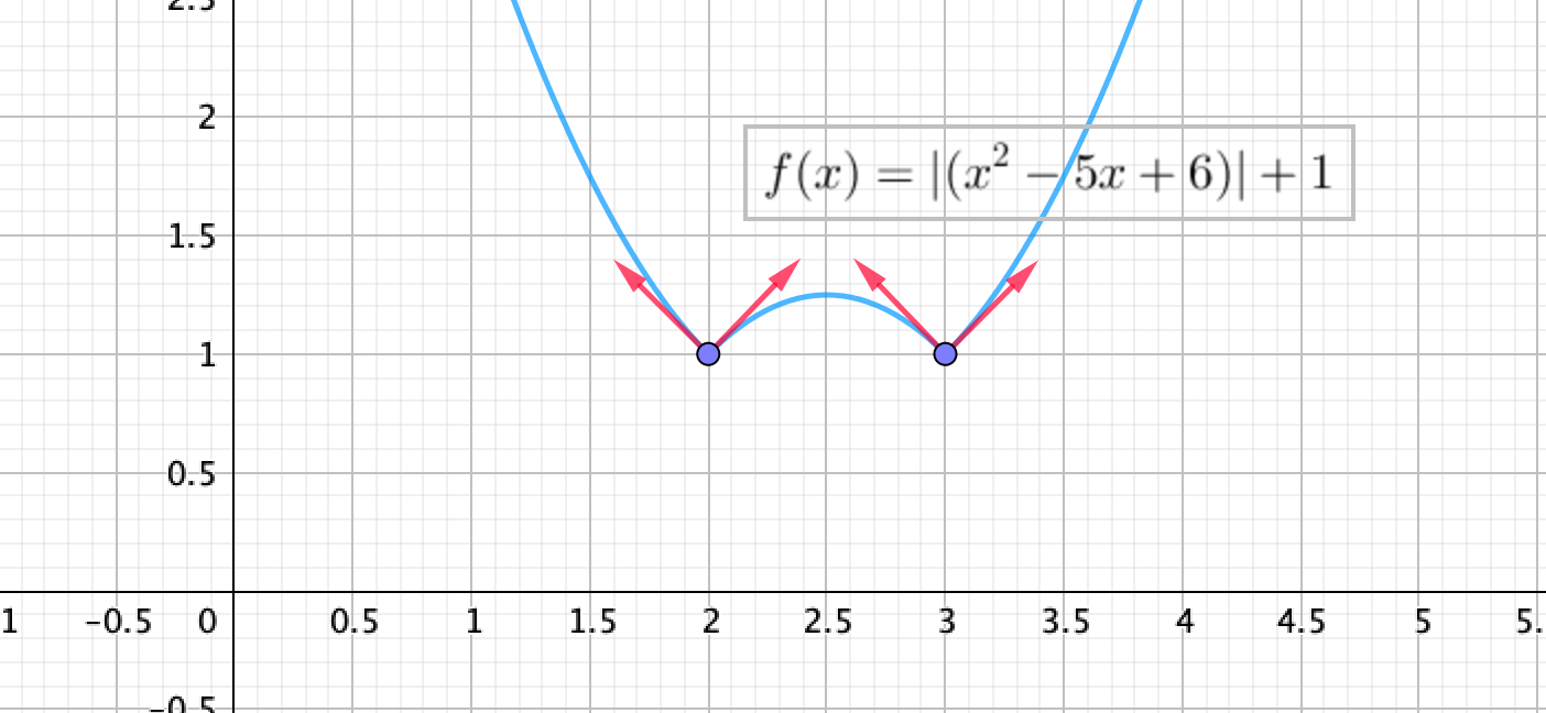5. Si on a pu en calculer, on ajoute des points remarquables avec leur tangente si possible : point d'inflexion, point anguleux avec les demi-tangentes