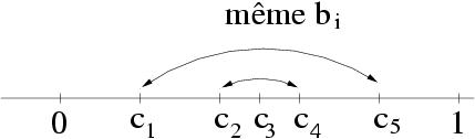 Les c i sont les noeuds de la formule de quadrature et les b i sont les poids .