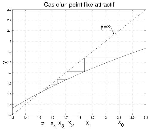 en utilisant la méthode de point fixe